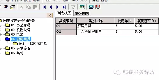 再去看一下软件中的固定资产类别,发现根本就没有042这个类别