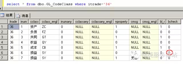 执行语句update gl_codeclass set bcheck='1' where itrade=36 and inum=6即可